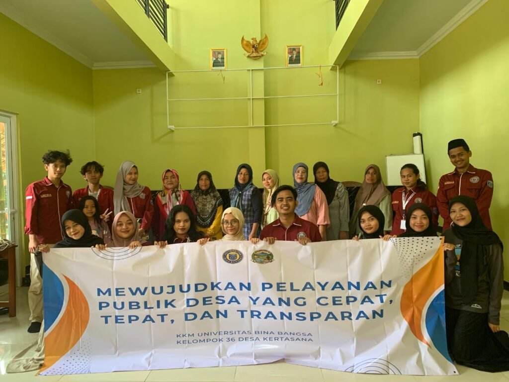 BANTENCORNER.COM- Universitas Bina Bangsa kembali menunjukkan komitmennya dalam pembangunan desa melalui program Kuliah Kerja Mahasiswa (KKM). Kali ini, KKM 36 berhasil mengimplementasikan program Smart Village di Desa Kertasana, Kecamatan Pagelaran, Kabupaten Pandeglang, Banten pada Kamis, 31 Juli 2025 dan memberikan dampak positif bagi pelayanan publik di desa tersebut. Program ini fokus pada peningkatan kecepatan, ketepatan, dan transparansi layanan pemerintahan desa.