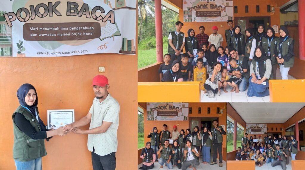 BANTENCORNER.COM – Dalam upaya meningkatkan minat baca anak-anak di wilayah pedesaan, Mahasiswa Kuliah Kerja Mahasiswa (KKM) Kelompok 45 Universitas Bina Bangsa menyerahkan secara resmi program Pojok Baca kepada Pemerintah Desa Cibungur, Kecamatan Sukaresmi, Kabupaten Pandeglang, Banten.